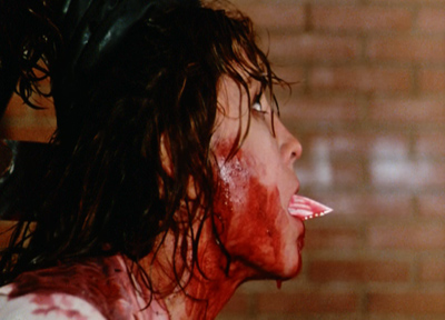 Overall: A very fun little gore-fest. I thoroughly enjoyed it and even the dumb scenes I mentioned are so-bad-its-good that it adds to the film’s appeal. Since this was an Italian production the over-dubs are laughable but again adds to its greatness. The filmmakers even went out of their way to give the impression that this is set in America with most scenes having a very obvious American flag or a picture of then-president Ronald Reagan. There’s also a very conspicuous scene of some of the actors eating Wendy’s hamburgers and fries. The kills are a hoot and even badly executed at times but again if you go into this film with the right attitude you will have fun. The shock ending will simultaneously leave you dumbfounded, laughing and for some, wincing at the screen.