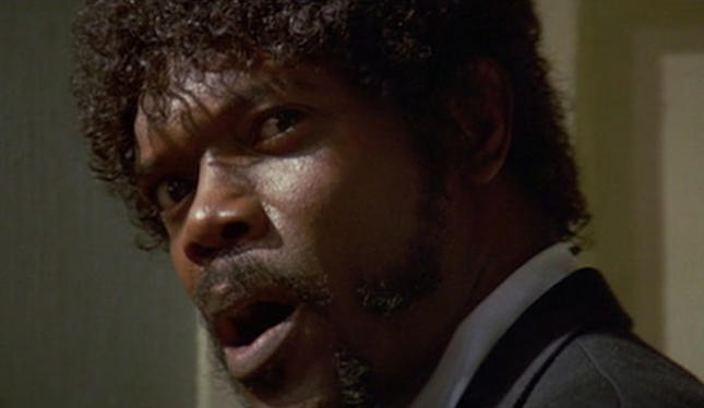 1) Jules’s character was originally written to have a gigantic afro, but a crewmember obtained a variety of afro wigs and one jheri curl wig. Quentin Tarantino had never thought about a jheri curl wig, but Samuel L. Jackson tried it on, Tarantino liked it, and it was kept.