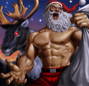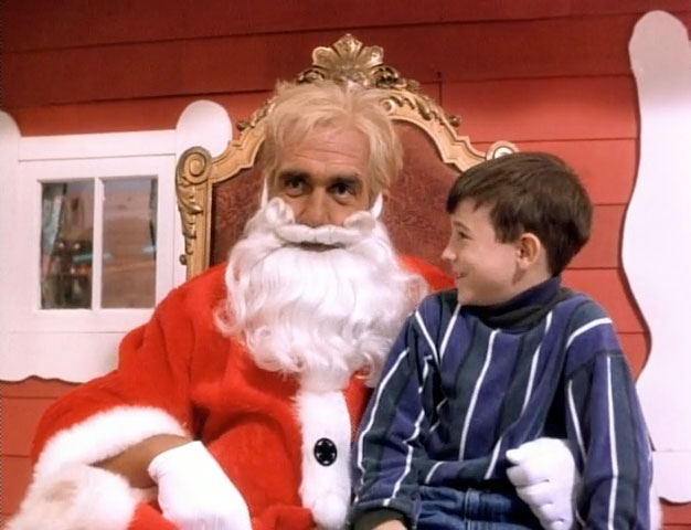 So kids sit on his lap and it’s just so awkward! Of course, he gets into a fight with two guys who try to steal money from a charity booth at the mall. Everyone loves it. No one calls the cops.