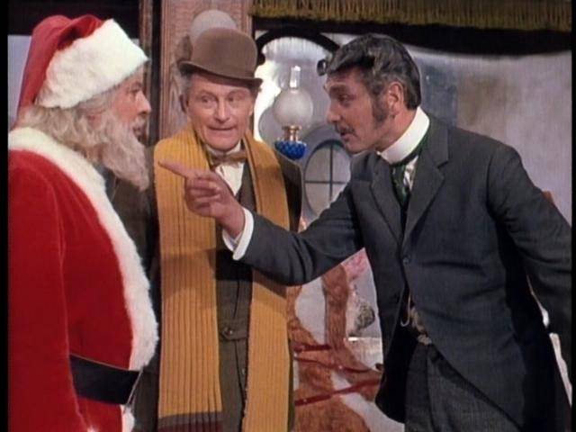 Santa and Sam bring Prune the rent money in pennies coated in children’s tears just in the Saint Nick of time. Santa has just enough time to load up his sleigh and deliver the toys to all the good girls and boys, who have bought and paid for them. Then we the audience are treated to the present of the worst reindeer and sleigh flying sequence ever put to film. And then apparently they ran out of film, as a montage of still images is shown of Santa, Sam, and Mrs. Claus delivering toys. I guess to show the entire filmed sequence would have just been too boring to bear. And it seems that Santa is only delivering toys to that one town. Maybe there was a nuclear holocaust everywhere else? Did they have nukes in 1866? This movie is deep.