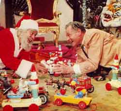 The creep, Sam Whipple, is hanging decorations later that night when Santa Claus comes by and tells him that Christmas isn’t coming this year because Phineas T. Prune has effed his stuff up. Sam just totally believes that this guy is Santa just because he’s the fattest, most bearded Italian in Smalltown, USA. “Santa” explains to Sam, who is a lawyer, that Prune has bought up the land in the North Pole where Santa’s workshop sits, and Santa is behind on the rent, meaning his property can be seized and all the possessions therein, including all the toys for the boys and girls! Prune has put Santa in a real raisin, so Santa has to lawyer up, and Sam’s his man. Santa comes to Sam because Sam wrote him a letter when he was a boy thanking him for the presents and telling him if he ever needed anything to let him know. Well Sam’s body wrote that check, and now Santa’s going to cash it on his ass!