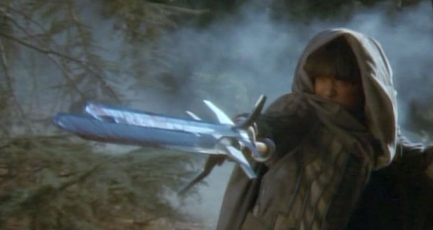 Anyway, TSATS stars some guy who is kind of a cross between Lee Majors and Tom Selleck, and even went on to star in a TV show where he played a private detective who was kind of a cross between The Fall Guy and Magnum. His name is Talon, and, like the mighty eagle, he has a sword with three blades on it. This is awesome, especially since the master medieval iron smiths who forged this sword managed to circumvent the issue of it being way too heavy to actually carry, somehow. And not only are there three blades, but at least two of them SHOOT OUT OF THE HILT! It’s like having a crossbow, but in sword form. The only problem is that once these blades are fired and bury themselves deep within an enemy’s thorax they’re virtually irretrievable.