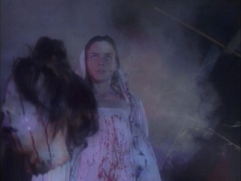 Dreamaniac seduces the guy who I think is Ace by tying him up with an extension cord. It’s possibly the least-sexy thing I’ve ever seen, and I’ve seen a hippopotamus puke on a rotting crocodile carcass. Ace gets electrocuted somehow and the camera angle is of the very clear outline of his package through his tighty whiteys. I refuse to do a screengrab of this. I have no doubt the director of Dreamaniac was arrested for something at some point.