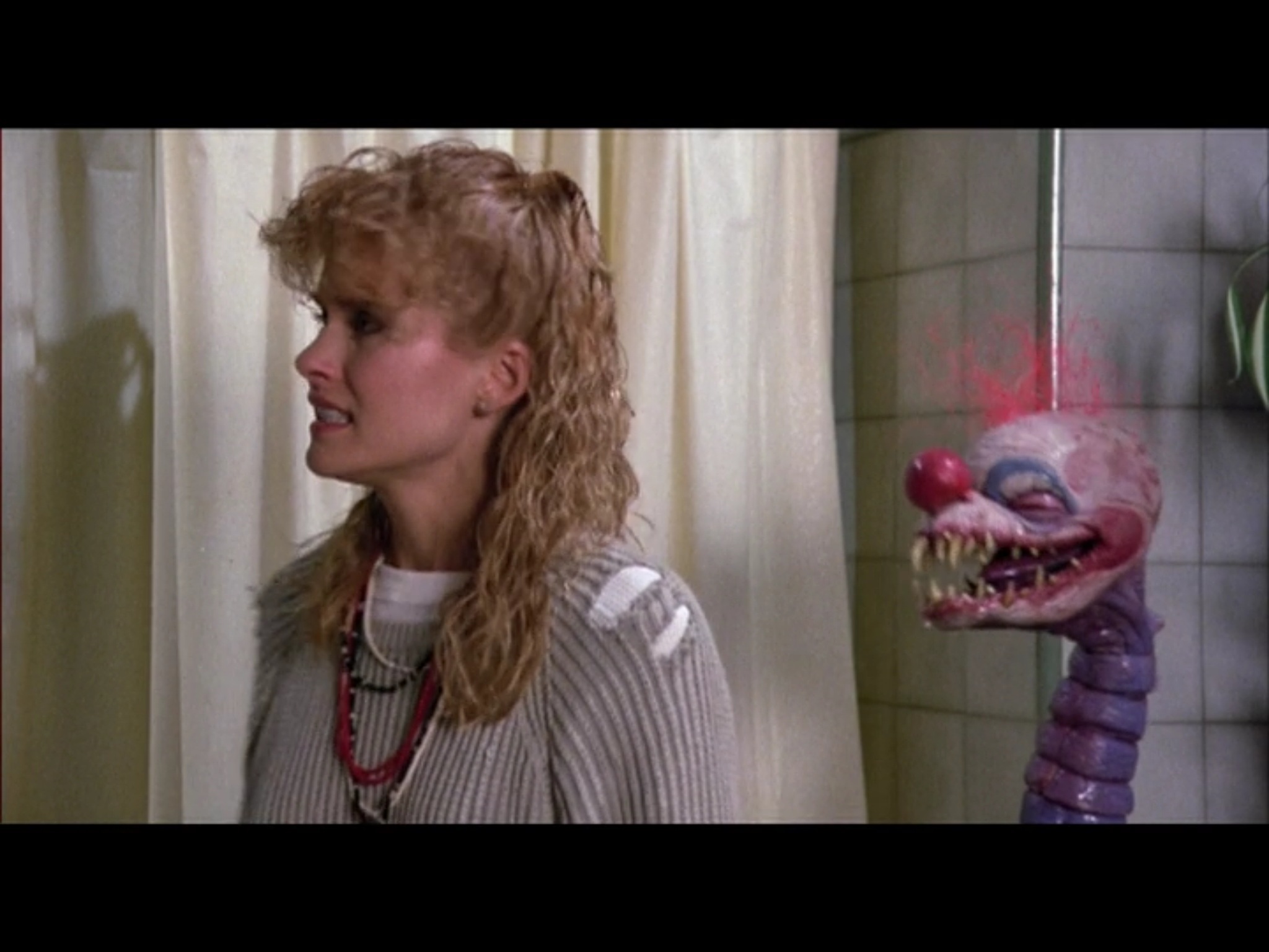 Double meanwhile, Debbie takes a closed-curtain shower and the popcorn that was stuck to her from before starts coming alive, eventually turning into some kind of Klown worms, which is what happens to unpopped kernels in your stomach.