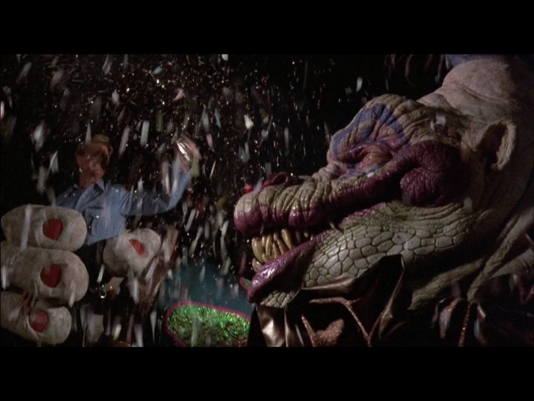The biggest Klown comes to the police station to confront John Vernon, and John Vernon locks it up for crimes against nature. But it decides to kill John Vernon via a noisemaker that grabs him by the throat and smashes him against the cell bars, just how it was prophesied he would die.