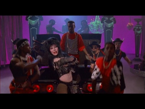 Anyway, now she has the money for her Vegas show, which we end with. The show is awful. Aside from Elvira’s boobs, it’s extremely homoerotic, with half-naked dudes prancing around. She actually raps at one point and sets back hip hop 500 years. There’s no way anyone would pay money to see this crap. Which I guess is pretty attributable to this movie.