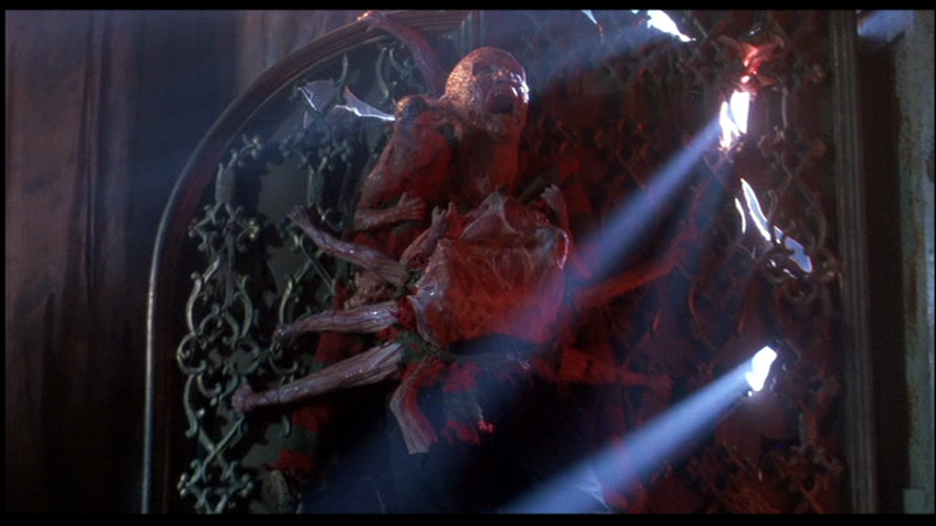 (Best) Death: Freddy has “died” multiple times, but his best one was probably in A Nightmare on Elm Street 4: The Dream Master. Although the “looking in the mirror” idea is pretty stupid, its effect is awesome, with the souls of all the people Freddy has killed violently escaping from his body and tearing him apart. (see Freddy’s death here, best I could find)