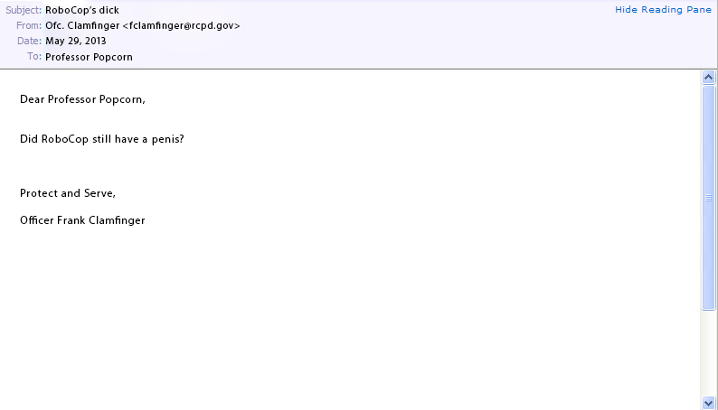 Professor Popcorn? Did RoboCop actually live in Detroit? If so, did he know Eminem?
