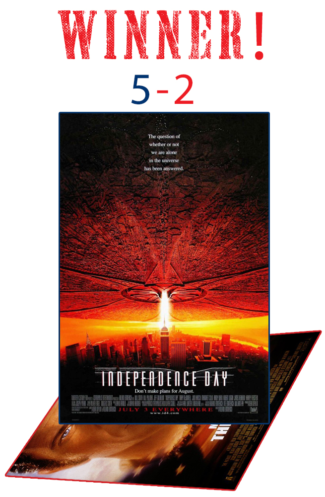 Independence Day: Extremely dumb but a lot of fun with a plethora of memorable quotes, Independence Day proved once and for all that Hollywood can make a blockbuster movie that doesn’t have to make sense or give the audience any connection to the characters and it can make gobs of money as long as the special effects overwhelm all your other senses.