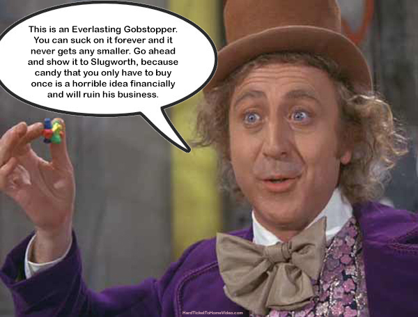 And it totally worked! She skipped right over the worst parts of the terror tunnel and arrived blissfully at the Inventing Room. And, overall, she loved the movie, so much she watched it twice, and I had to distract her again. So you can go forth with this strategy and put on Willy Wonka and the Chocolate Factory without worrying that your child will be traumatized for life—although you’d be better off replaying that scene for two hours with your kid’s eyelids taped open than showing them Charlie and the Chocolate Factory.