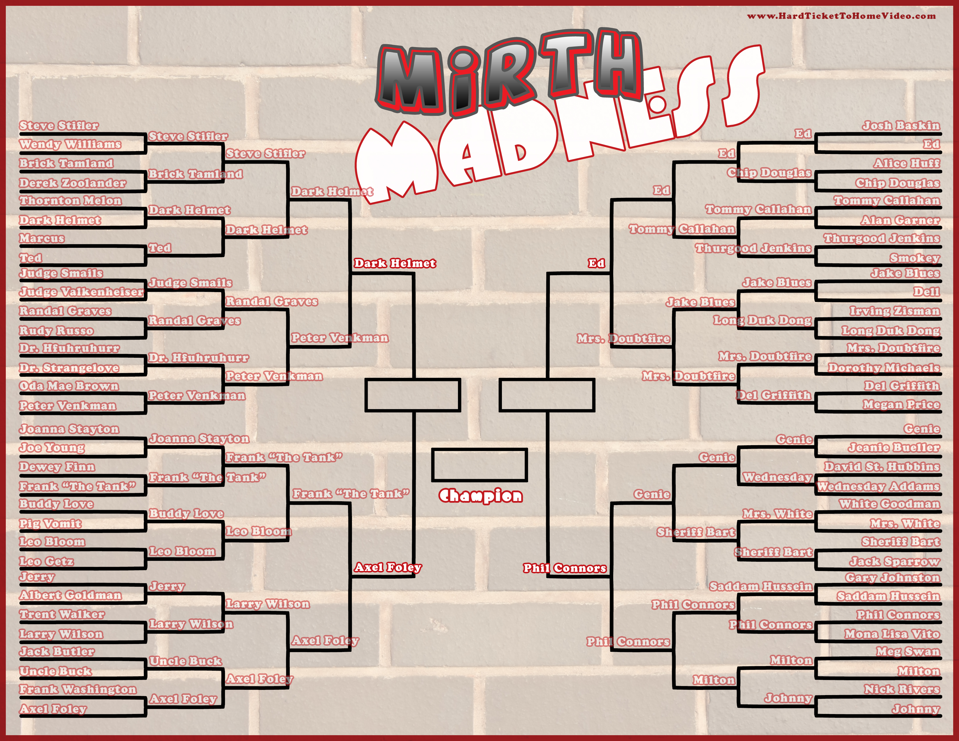 This is it, the semifinals of the first grouping of 42 brackets! We should be done with this tournament sometime in June 2017!