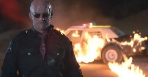 - Seriously, this film should have nothing but hard rock music playing. Instead of Maximum Overdrive having all the songs by AC/DC, this movie should since it’s named after one of their most famous tunes. This scene Charlie is attacking Hell Cop’s vehicle and some very weak-ass song is playing. It would definitely play out better with “Shoot to Thrill” or “Thunderstruck.”