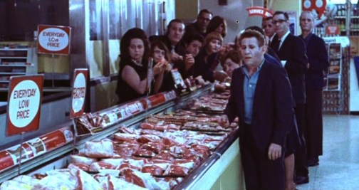 Guests of Hard Ticket To Home Video dine at the all you can eat butcher counter in a Grand Union in 1973.