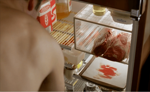 Is It Raw and Bloody: For a cannibal flick it really is weak with the blood and guts. I think the most blood we see on screen is when Saxon looks in the fridge and his roast is dripping all over.