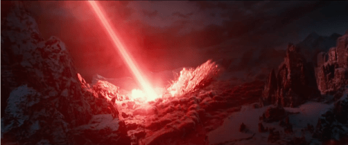 Whether or not Vader makes an actual appearance or just as C-3PO will remain to be seen. Personally, I will think it’d be tough to get back the iconic black armor and mask. Maybe 3PO will breath the same way. I suppose an all black C-3PO would be awesome. Maybe that’s why they teased us with him having the one red arm in The Force Awakens. Regardless, it’s going to be epic. And since the Emperor is now part of the Death Star this could potentially show us that the Death Star could be rebuilt with Sith power. Maybe Midichlorians band together to rebuild the station to it’s fullest capabilities like nanobots. We do see one quick shot of what appears to be a large laser blast coming from the sky: