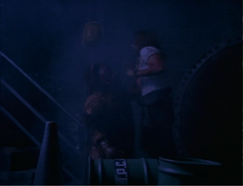 - Lisa Boyle stupidly waits right in front of the slowly closing door after Maria Ford runs past after trying to trap the monster. It was hilarious.