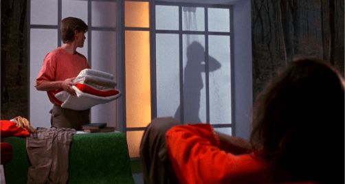 - I love how this is the year 2045 on a sophisticated spacecraft and Ethan is wearing a simple red T-shirt. I think he’s wearing Bugle Boy pants as well.