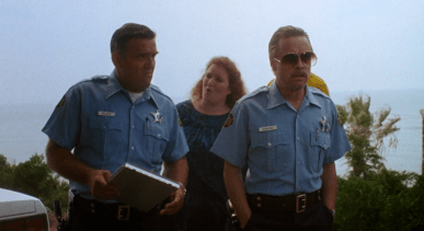 For some supernatural reason Charles thinks real hard and makes him and his car disappear on the side of the road. The cop is baffled at how he lost the Trans Am but Clovis can see him still. Charles yells at Clovis: “stop looking at me you fucking cat!” This is ridiculous!