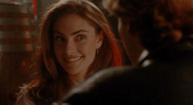 Now we’re seeing Mädchen Amick dance in the theatre lobby to that top 40 hit in 1992: “Do You Love Me“ by the Contours.