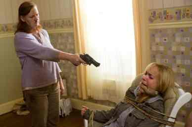 Sheriff David, whose hand was impaled by a large knife, used that same impaled hand to stab the Crazy lady in the throat who was threatening his wife. Nice.
