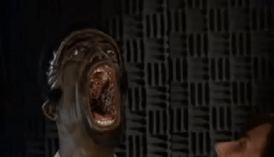 - Brian: The aftermath of the DJ’s face kind of reminded me of Chocolate Chip Charlie in The Stuff.