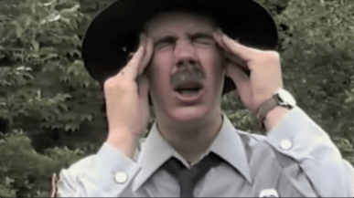 - Can something of note happen please. I’ve been watching the sheriff meander the forest for over 5 minutes and now he’s having a violent episode in reaction to seeing Jason’s mask.