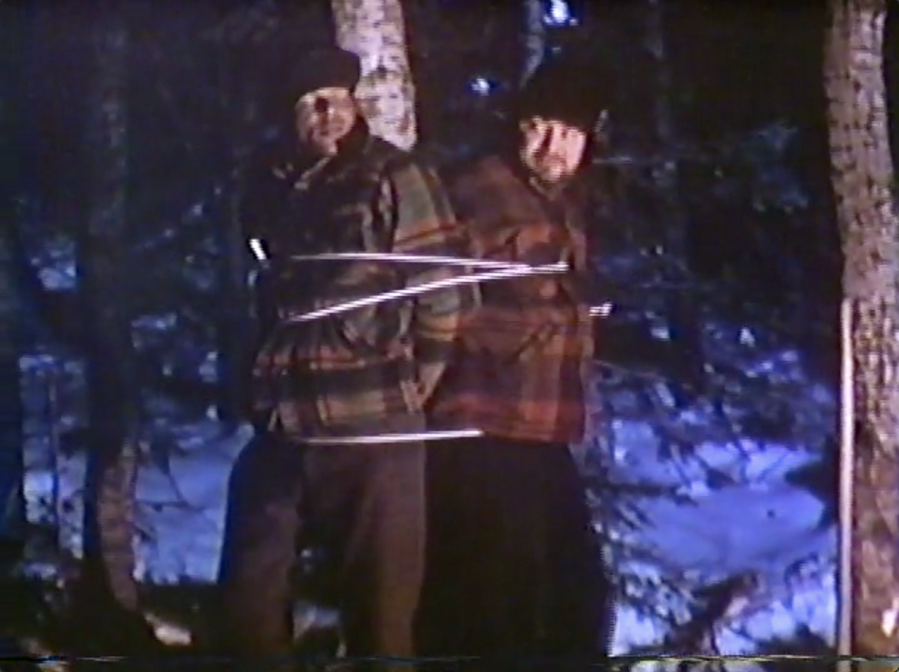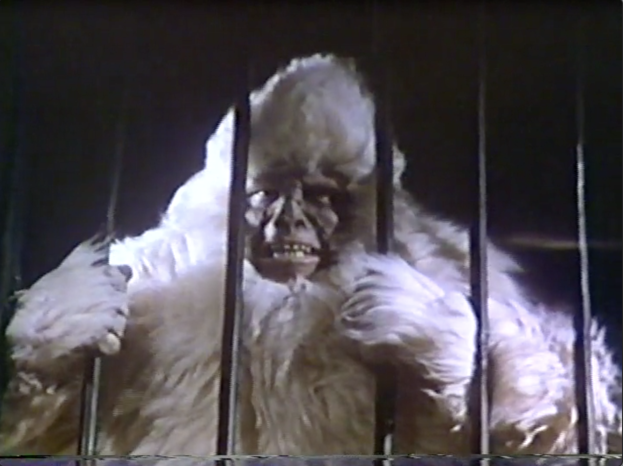- The Yeti (it’s all white and this scene is in a winterscape) then attacks the other fella partially obscured by the trees. Kinda a cool shot actually in slightly revealing the monster of the movie.