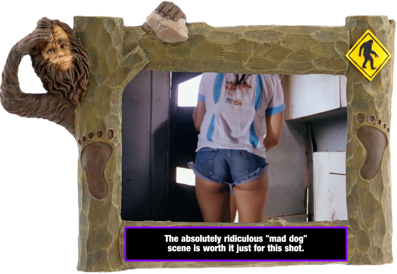 This entire scene that should have Bigfoot in it, instead is wasted on a fucking German Shepard with cool whip on his mouth. Cujo was last year Chuck, try something else visually.