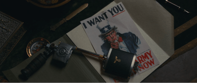 - The message was a recruitment poster with Uncle Sam and as Hitler looks back up in disbelief, Elliott kills him with his secret spy gun made out of a pen and flask and other common items that would give MacGuyver a boner.