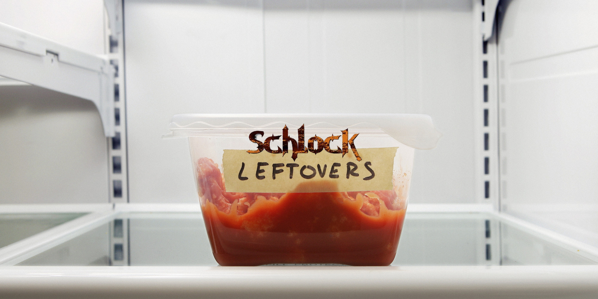 Single leftover container on refrigerator shelf